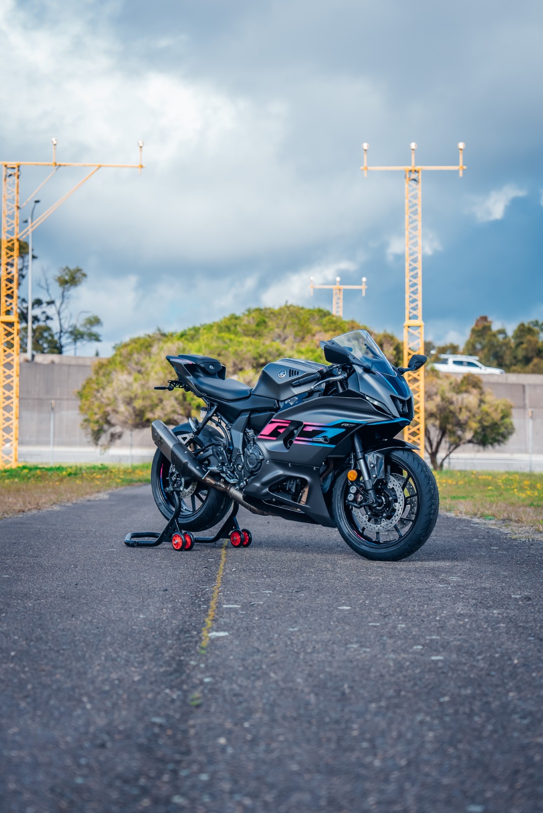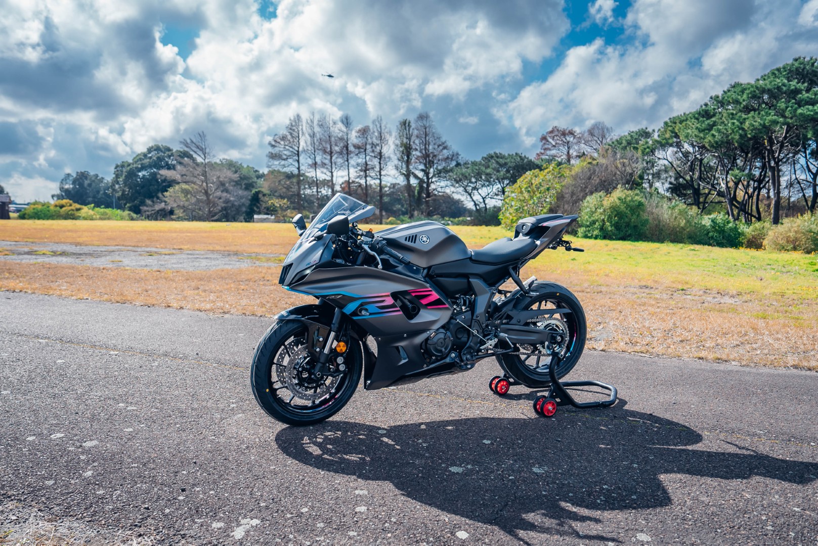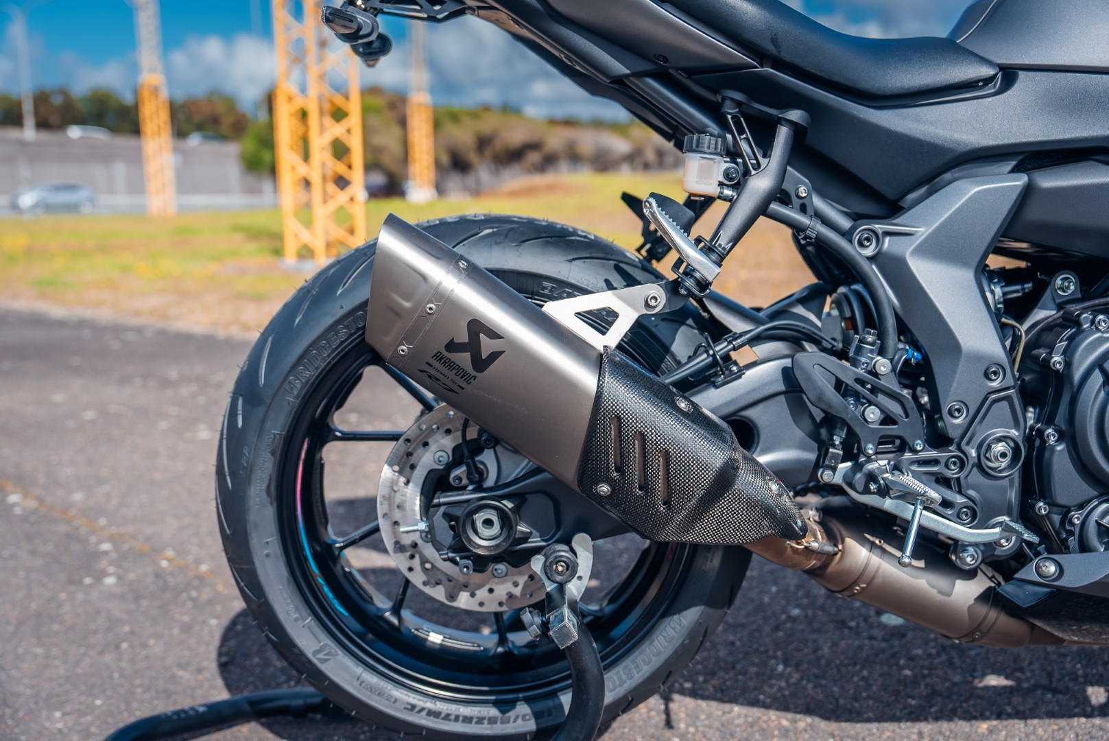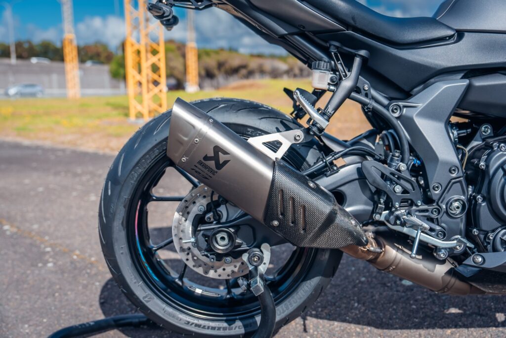 Fully adjustable Sachs unit. Aluminium single-sided swingarm.